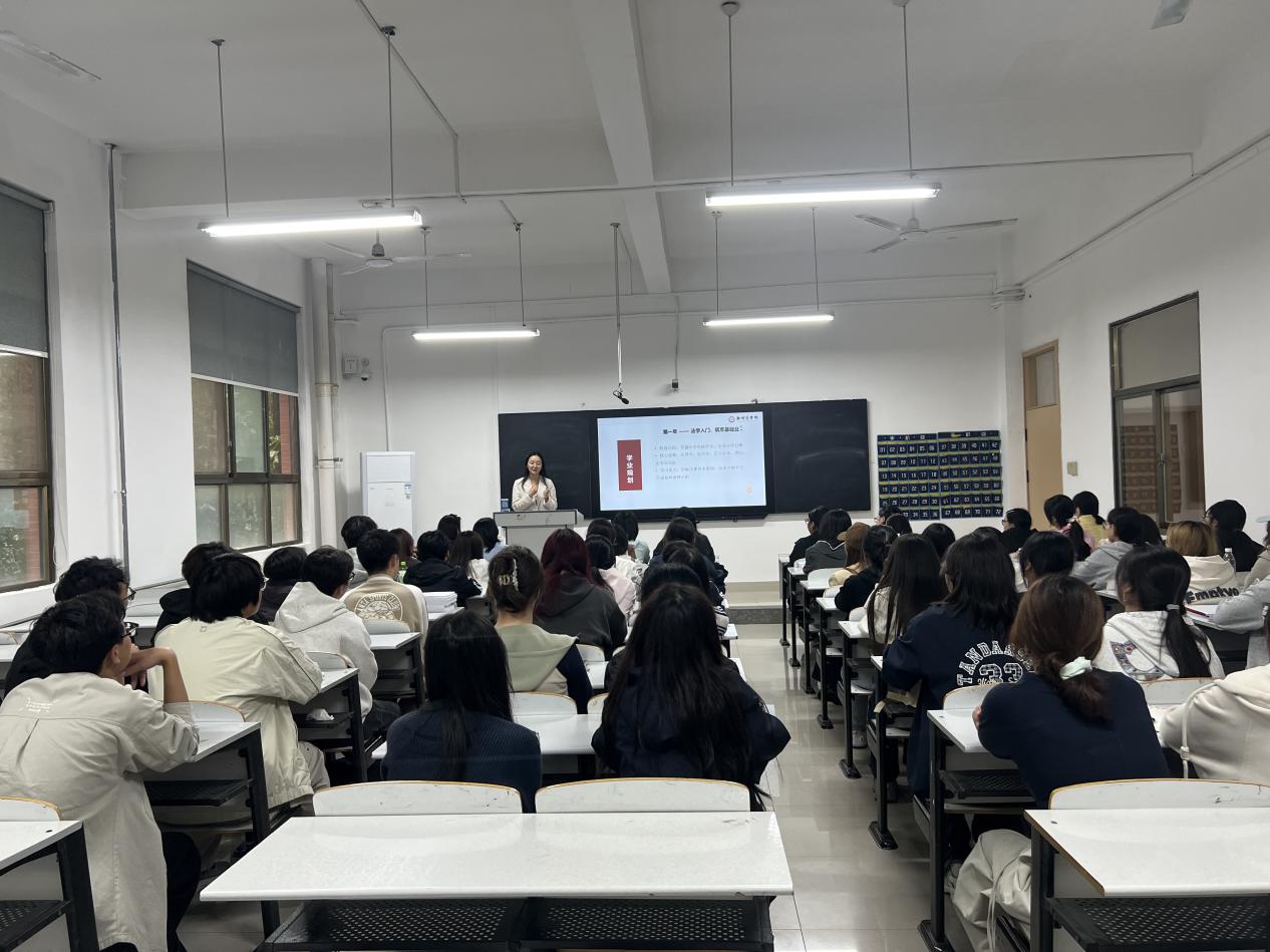 随后,法学教研室郑璐璐老师以学业规划为主题,为新生解析大学四年的学业与职业能力培养逻辑。她围绕知识产权专业的课程体系,系统梳理了专业的设置思路,强调扎实的法学理论基础是未来从事知识产权相关工作的核心支撑。针对职业能力提升,郑璐璐老师重点介绍了学科竞赛的实践价值,鼓励新生积极投身第二课堂,通过竞赛培养法律实务操作能力、团队协作能力与创新思维,实现理论知识向职业技能的转化,为未来职业发展积累实践经验。
