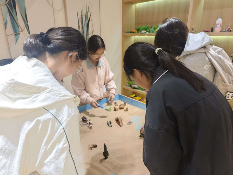 随后,同学们逐一走进沙盘室、心理体验室、综合素质训练室、情绪宣泄室等功能室。参观过程中,同学们积极互动、热烈讨论,直观感受心理健康教育中心设施的多样性,同时也明确获得了心理支持的途径。