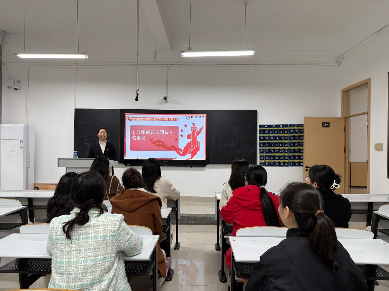 为规范支部组织建设,顺利完成新一届党支部委员会换届选举工作,明确后续工作方向与重点,10月24日,我院教师第一党支部在自力楼204召开10月份党员大会。会议由支部组织委员丁箐文老师主持,全体党员参会,会议严格按照既定议程有序推进。