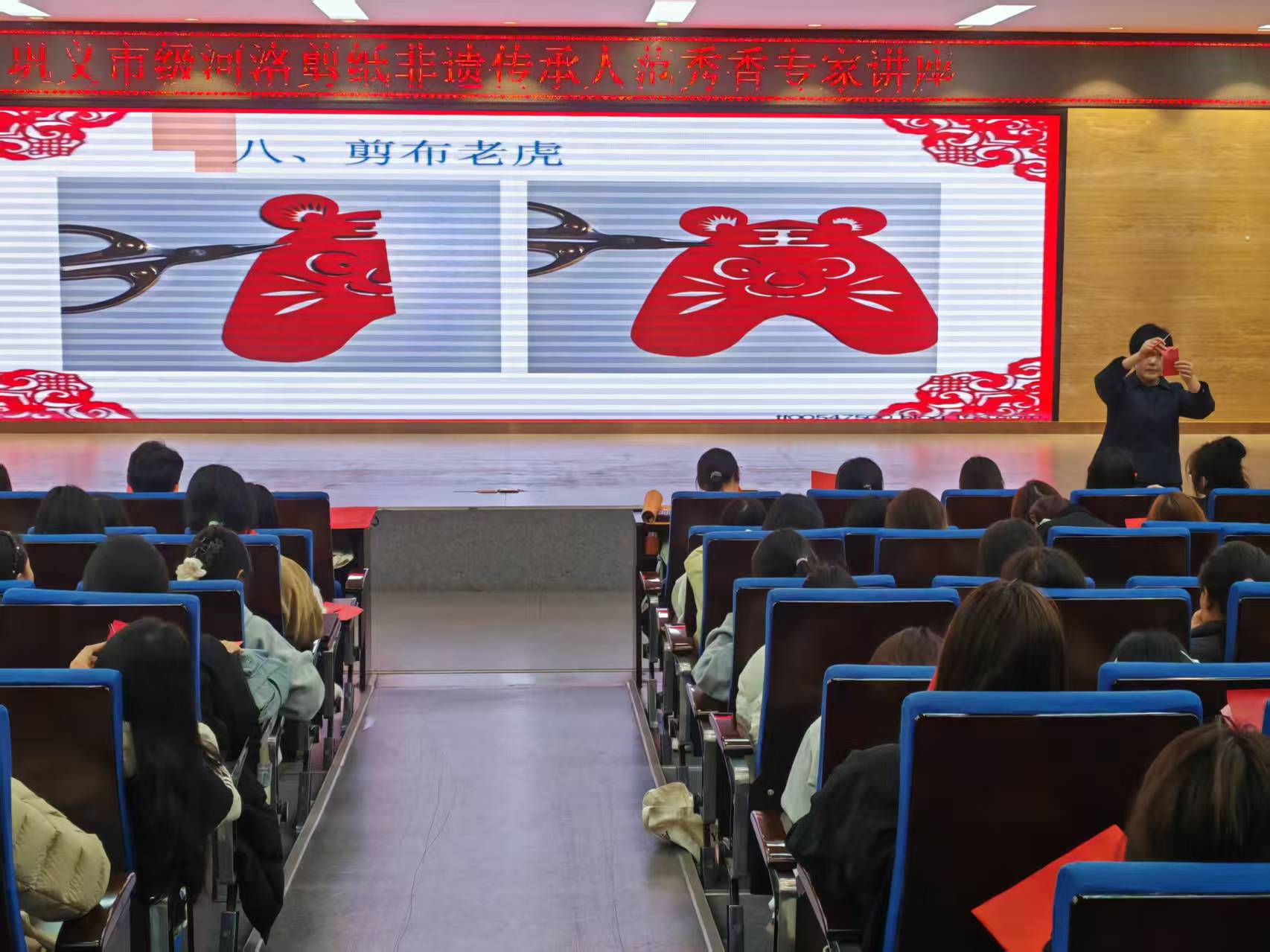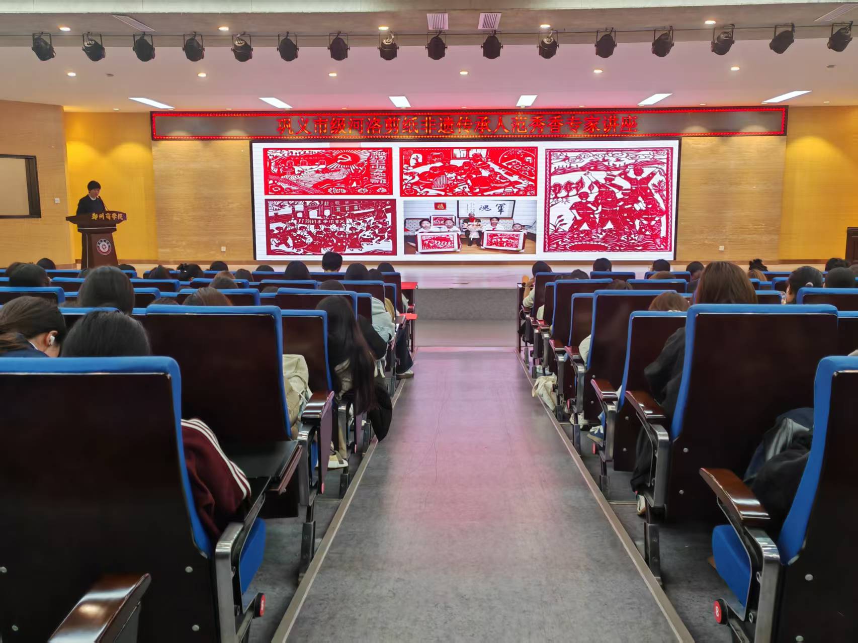 为弘扬中华优秀传统文化,丰富校园文化生活,增进学生对非物质文化遗产的了解与热爱,10月30日,我院邀请巩义市级非物质文化遗产“河洛剪纸”传承人——范秀香老师,为师生们带来一场中国民间剪纸文化讲座。讲座由汉语言文学教研室主任张永青主持。
