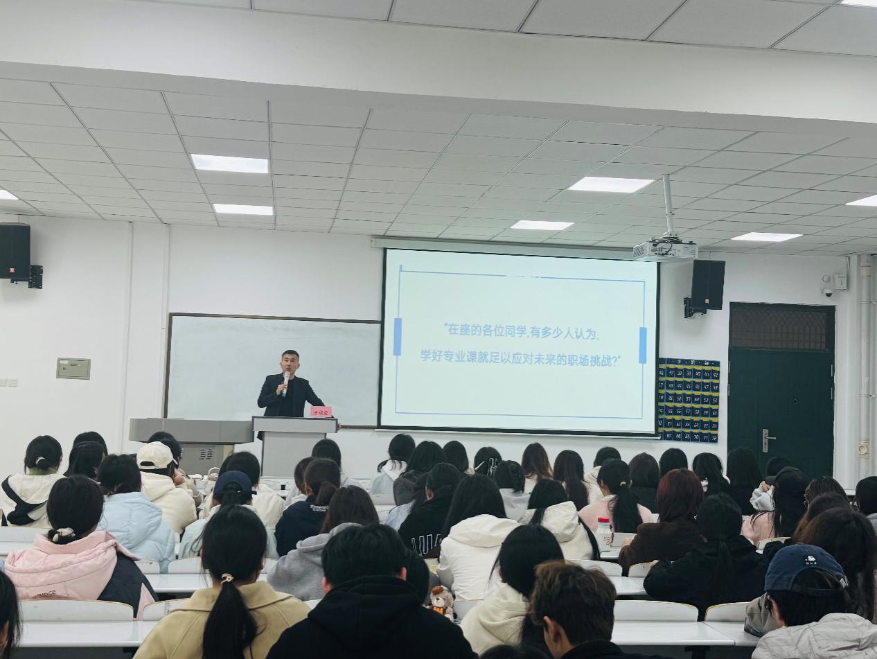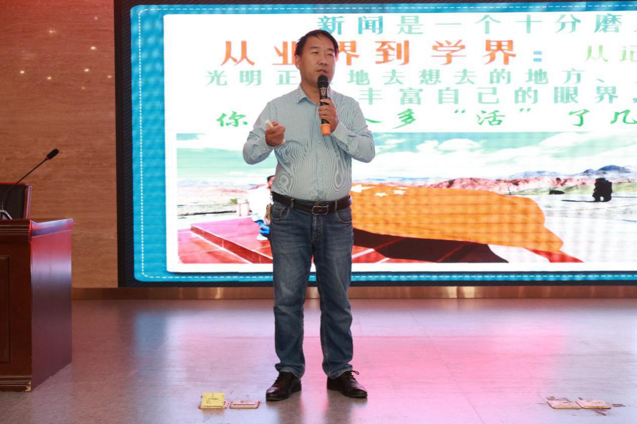 10月31日下午邀请郑州广播电视台副主任王成龙为学生开展专题讲座《从校园到职场:给未来传媒人的第一堂“预备课”》。王成龙老师结合自身从业经历,讲述了传统媒体在AI浪潮下的创新与转型。他提醒学生:“AI可以成为我们的工具,但不能取代我们的思考。真正的新闻人,永远要有独立的判断与温度。”讲座现场互动频繁,学生们深刻体会到传媒职业的现实挑战与未来方向。