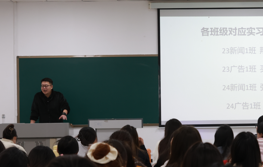 为保证实习实训工作顺利开展,10月27日上午,新传教研室召开实习实训动员会,由新传教研室实习实训负责人张寅韬老师主持会议,教研室主任许明月,实习实训负责教师荆晨阳、舒雅、买艾敏参加会议。老师们从实习目标、纪律要求、安全事项等方面进行了详细说明,鼓励同学们珍惜机会,在实践中积累经验、感悟职业精神。