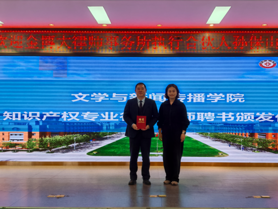 讲座现场首先举行了行业导师聘书颁发仪式。文传学院副院长曹萌代表学院,为孙主任颁发行业导师聘书,以此搭建学界与业界深度联动的桥梁,为法学专业学子引入优质行业资源,助力人才培养与职业发展衔接。