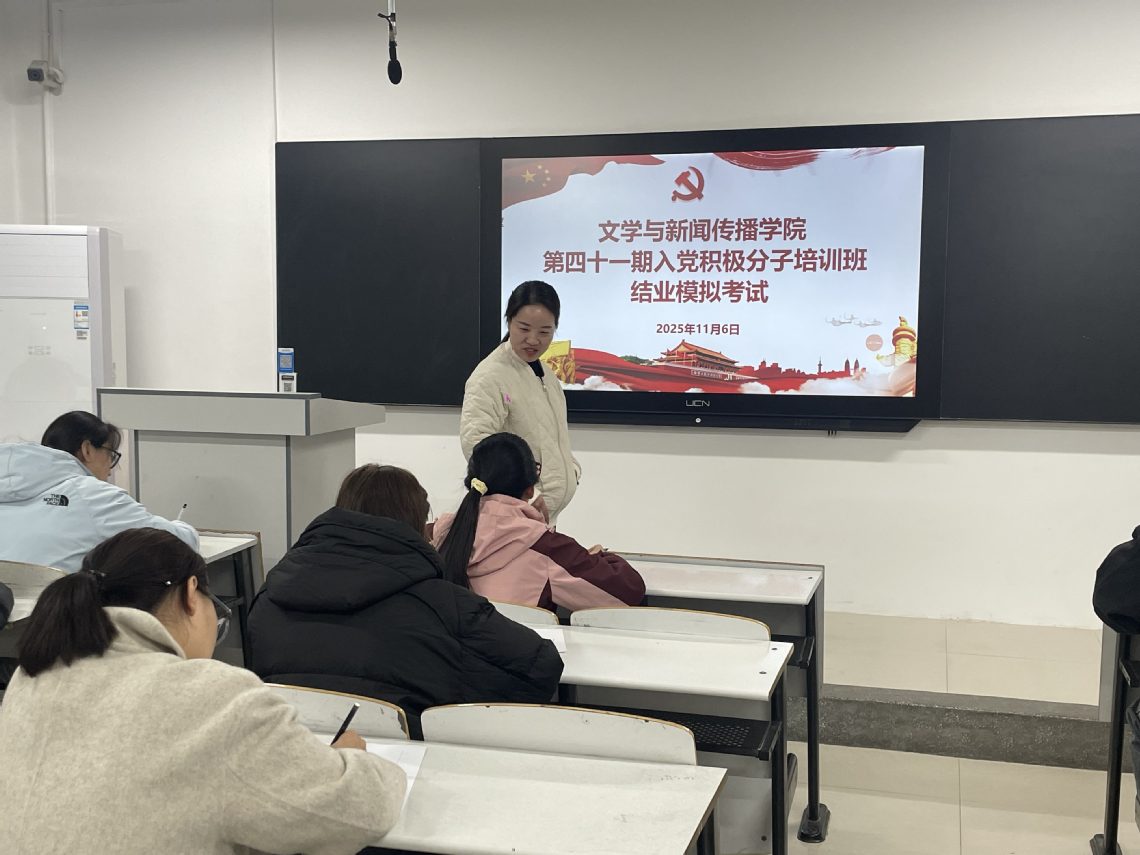 为检验入党积极分子阶段性学习成效,强化理论武装,严明学习纪律,11月6日18时,文传学院党委顺利组织第41期入党积极分子开展结业考试模拟考。学院党委书记贾蓓、组织委员程斯佳一同巡考。