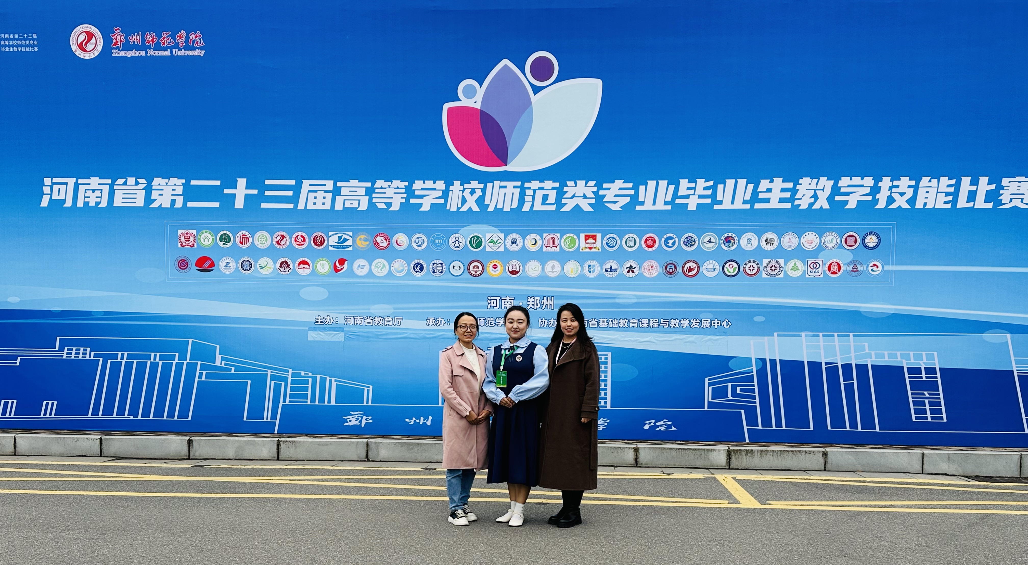近日,由河南省教育厅主办、郑州师范学院承办的河南省第二十三届高等学校师范类专业毕业生教学技能比赛圆满落幕。我校学前教育专业学子在激烈角逐中脱颖而出,斩获一等奖1名、二等奖1名、三等奖2名的优异成绩,充分展现了我校师范生的专业素养与教学能力。