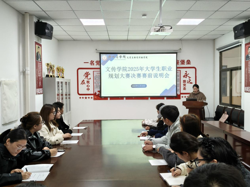 为确保决赛环节规范有序开展,切实提升选手备赛质量与竞技水平。11月10日,我院于自力楼101教室召开文传学院2025年大学生职业规划大赛决赛赛前说明会。我院职业规划大赛联络员司白雪老师、相关指导老师以及入围决赛选手参会,会议由司白雪老师主持。