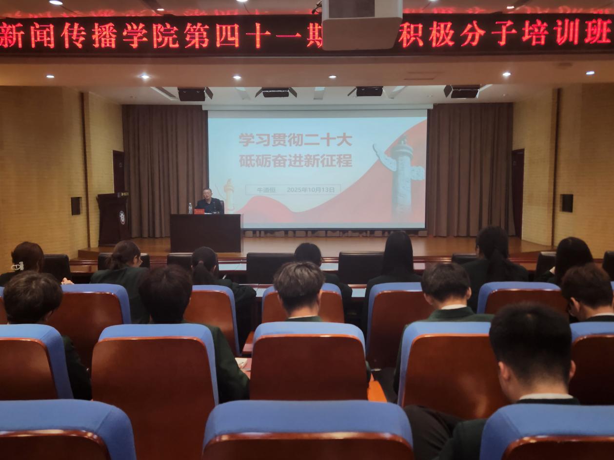党课第一讲由我院牛道恒老师主讲,他以“学习贯彻党的二十大,砥砺奋进新征程”为主题,课程内容从青年使命、发展规划到历史启示,层层递进,引导学员深化认识。通过党课系统学习党的理论、历史和宗旨,让入党积极分子从“向往入党”深化为“明白为何入党”,筑牢理想信念根基。