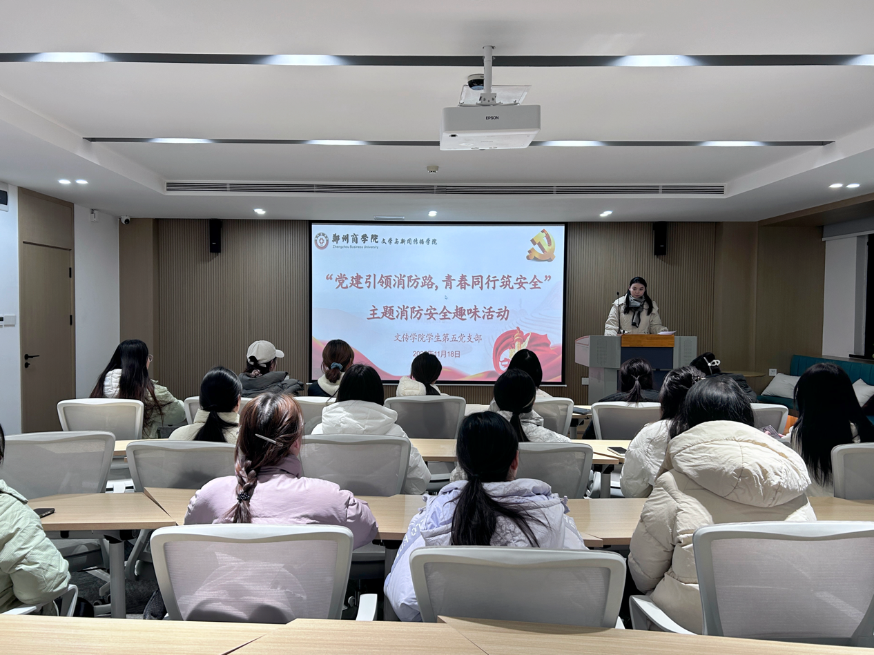 为推动消防安全教育融入日常、扎根心间,切实提升支部同志火灾应急处理能力与自防自救技能,共同筑牢平安校园坚固防线,在全国第九个“消防宣传月”暨第34个全国消防日的浓厚氛围中,文传学院学生第五党支部于11月18日在32号楼一站式学生社区召开“党建引领消防路,青春同行筑安全”主题党日活动。