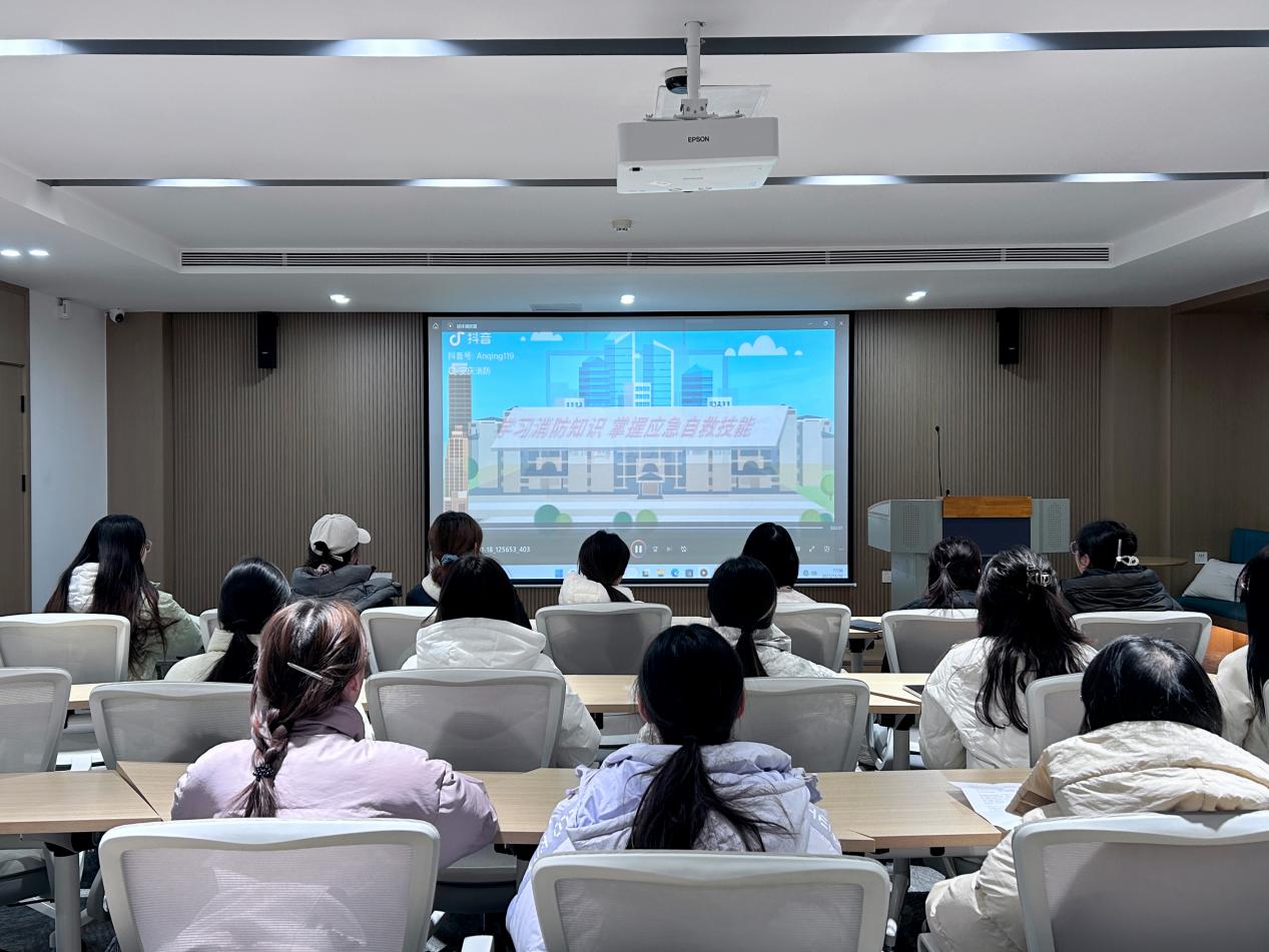 活动伊始,支部宣传委员李佳音带领支部成员共同观看消防主题教育影片。通过真实火灾案例,直观揭露了电器老化、违规用火等隐蔽隐患的致命危害,同时以清晰的实操演示,详细讲解了火灾报警规范、疏散逃生姿势、初期火情扑救等实用技能,让大家在强烈的视觉冲击中深化了对“安全无小事”的认知,系统掌握了应急处置的关键要点。