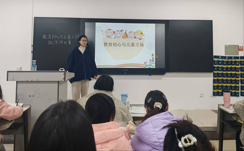 “教育初心与儿童立场”师德主题微演讲比赛将系列活动推向高潮。参赛选手立足个人成长与教育实践,用真挚的语言和富有感染力的表达,阐述了对师德的深刻理解与践行决心。比赛不仅锻炼了学生的综合素质,更通过价值引领筑牢了学生的职业理想与信念根基。