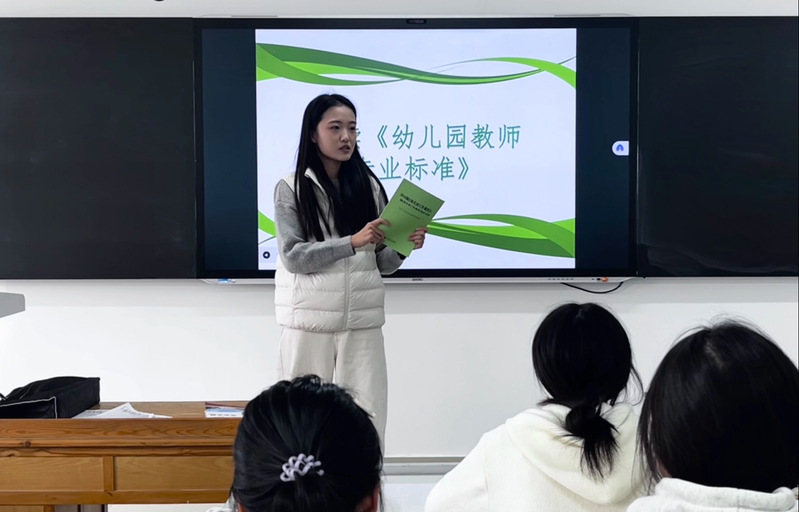 在《幼儿园教师专业标准》专题学习环节,同学们通过系统解读与自我反思,清晰认识了新时代合格幼儿教师应具备的知识、能力与素养结构。大家结合自身见习体会,坦诚审视优势与不足,初步规划了个人专业发展路径,实现了从“被动接受”到“主动建构”的专业身份转变。