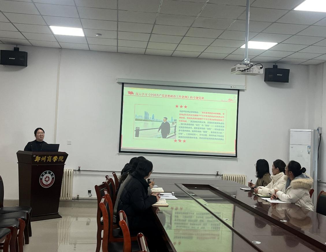 在核心学习环节,支部书记重点阐释了全会提出的“坚持和加强党对教育事业的全面领导”“落实立德树人根本任务”等核心要义,并结合高校教育教学实际,梳理出全会精神与教师岗位职责的结合点,引导党员教师深刻认识全会精神对教育工作的指导意义。领学过程中,党员教师们认真聆听、详细记录,不时点头共鸣,现场学习氛围浓厚。