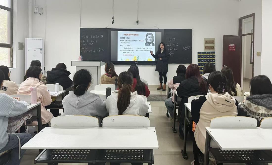 10月22日第6节,在H317教室,王静静老师为24教专1班讲授的《学前教育学》课程,以“历史脉络与理论知识结合与课堂讨论”的课堂形态,让知识变得立体鲜活。本节课围绕学前教育核心理论演进展开,以福禄贝尔“游戏理论”为起点,衔接至杜威“教育即生活”思想,通过时间轴式的梳理,为学生铺就了学科发展路径。
