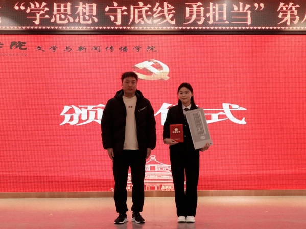 为深入学习贯彻党的二十届四中全会精神,强化青年学子党性修养,落实立德树人根本任务,11月26日18时,文传学院于自力楼三楼报告厅举办“学思想 守底线 勇担当”第八届主题微党课大赛(决赛)。文传学院党委书记贾蓓、团委书记王凯、马克思主义学院原理教研室主任李巨存老师、各学生党支部书记出席本次活动。