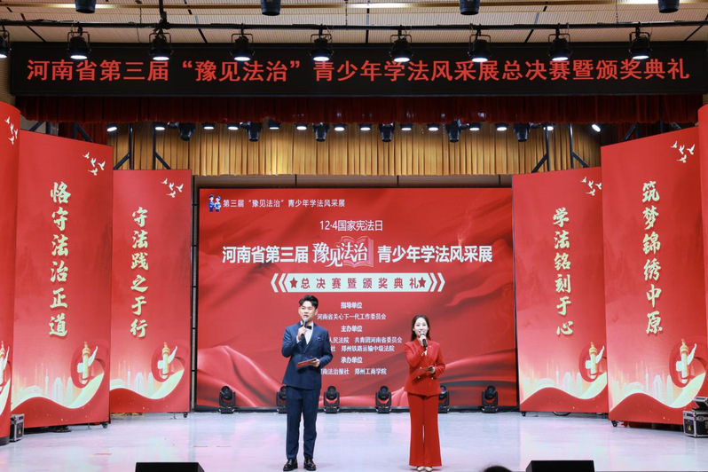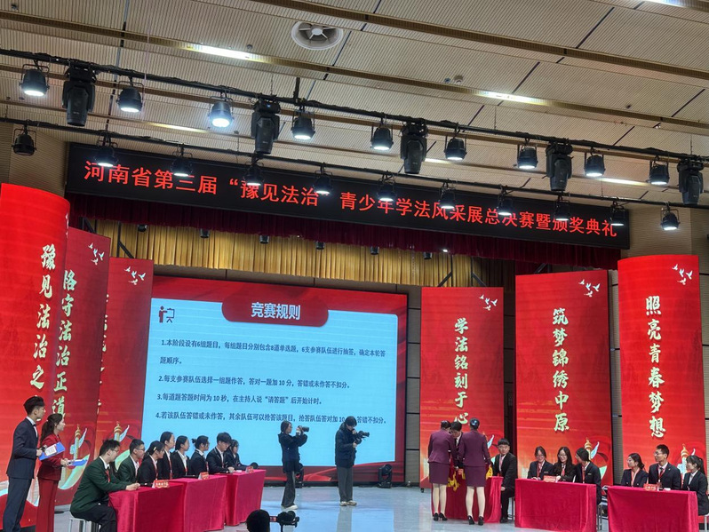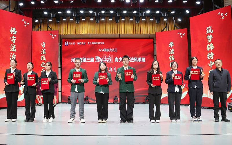 12月4日,河南省第三届“豫见法治”青少年学法风采展总决赛暨颁奖典礼在郑州工商学院举行。本次活动由省关心下一代工作委员会指导,省法院、共青团河南省委、河南日报社、郑州铁路运输中级法院联合主办,河南法治报社与郑州工商学院共同承办。我院知识产权专业乔千和、许艳艳、冯军豪3名学生参赛。经过激烈角逐,我校代表队荣获“三等奖”,我院程果老师荣获“优秀指导老师”。