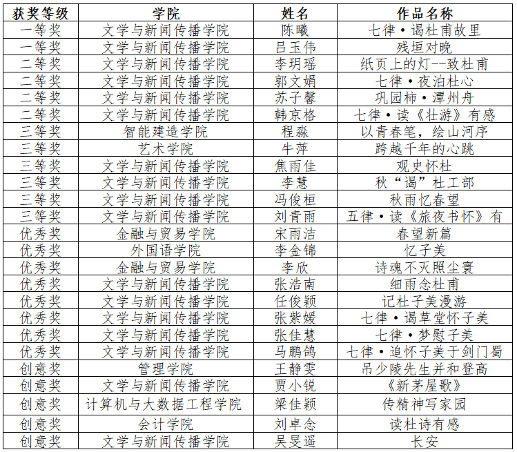 本次大赛不仅是一场诗歌技艺的比拼,更是一次深沉的文化寻根与精神接力。它以青春之笔触,架起了与千年诗魂对话的桥梁,让杜甫笔下的家国情怀在新时代青年心中焕发出璀璨光芒,激励广大青年以文脉传承为己任,以昂扬姿态投身民族复兴的伟大征程。