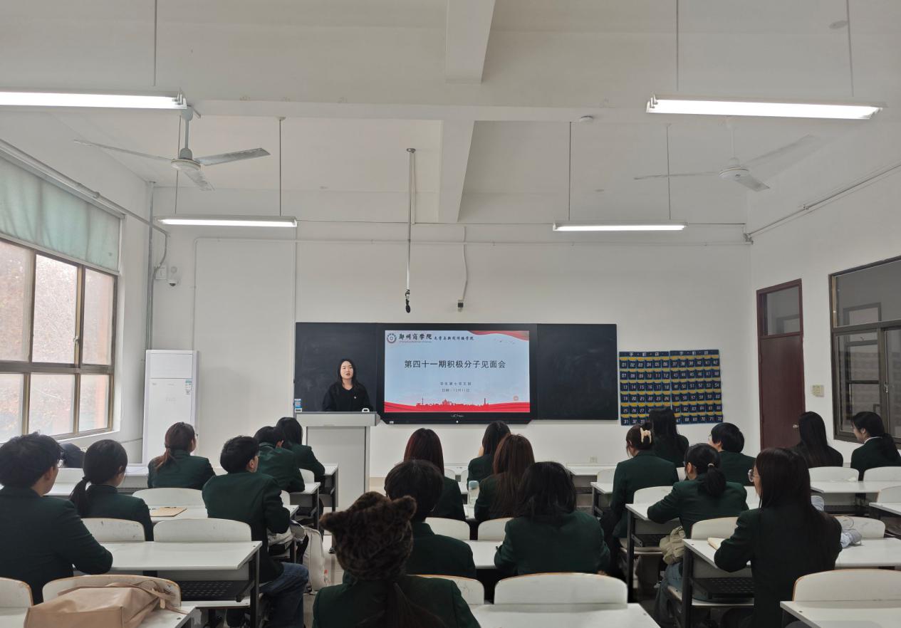 为加强支部队伍建设,扎实做好入党积极分子教育培养工作,帮助其尽快了解支部、融入集体、坚定理想信念,2025年12月11日中午,学生第七党支部于H210召开第四十一期入党积极分子见面会。