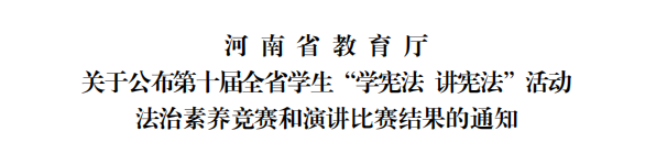 近日,由省委教育工委、省教育厅主办的2025年第十届全国学生“学宪法 讲宪法”河南省赛区总决赛落下帷幕,我院陈曦同学凭借沉着冷静地发挥,荣获高校组比赛一等奖。