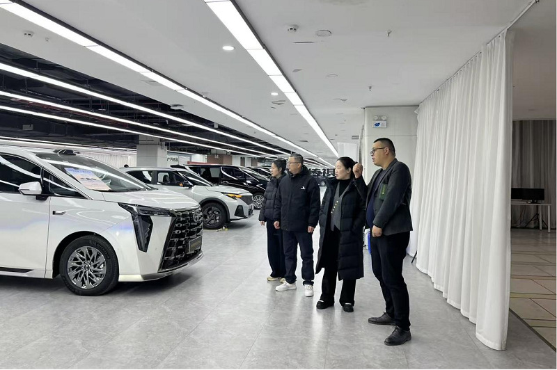 在嗨购公司相关负责人的陪同下,贾书记一行实地考察了企业旗下的汽车品牌直播基地,走访了综合办公区域、企业文化展示中心及多个专业直播间,重点了解了企业在“无真人出镜”汽车直播方面的创新做法、技术应用与运营模式,并就新华网汽车直播基地及中国郑州直播电商基地的合作平台运作情况进行了深入交流。