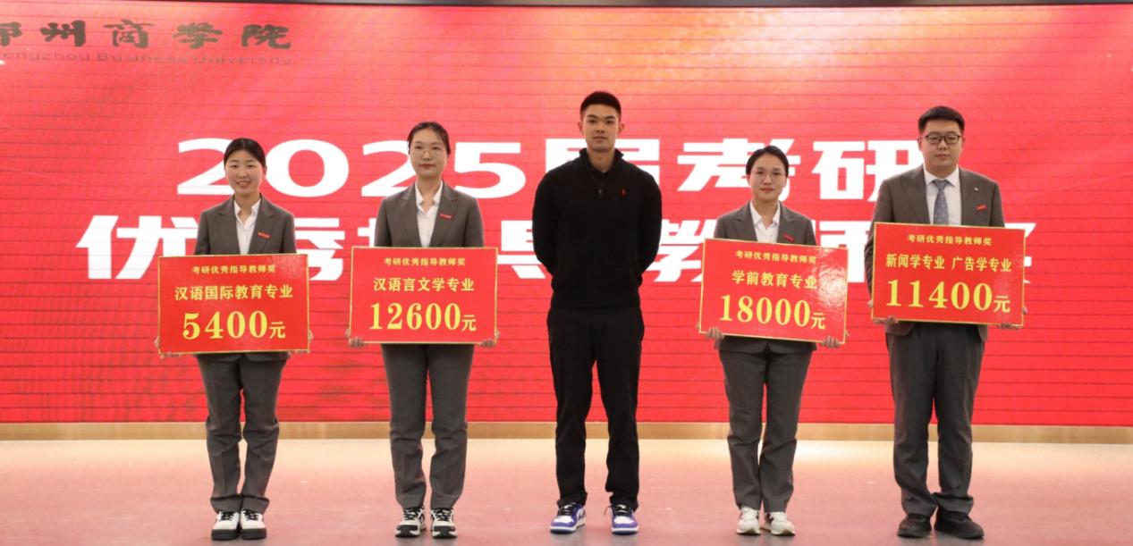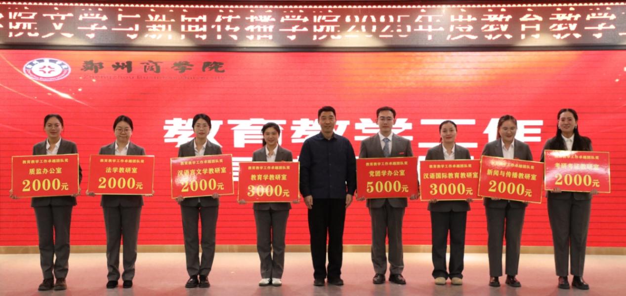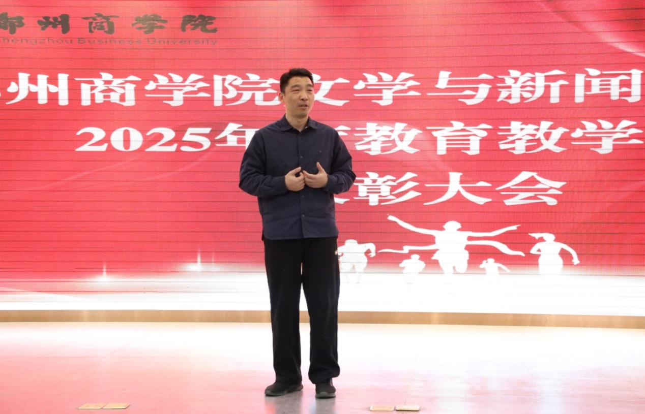 会议伊始,石璐院长宣读《郑州商学院文学与新闻传播学院2025年度教育教学工作表彰决定》。随后,大会进入颁奖环节,对荣获“学工团队个人突出贡献奖”“考研辅导团队奋力拼搏奖”“教育教学工作卓越团队奖”以及“2025届考研优秀指导教师奖”的集体和个人进行了表彰,校领导及学院相关负责人分别为获奖代表颁发荣誉证书。