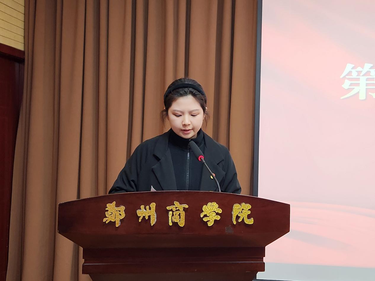 学生第六党支部的徐佳越同志结合自身经历,讲述了在学习、工作和生活中以党员标准严格要求自己的实践体悟,勉励全体学员以学为本、担当为要,在实践中砥砺成长,争取早日加入党组织。