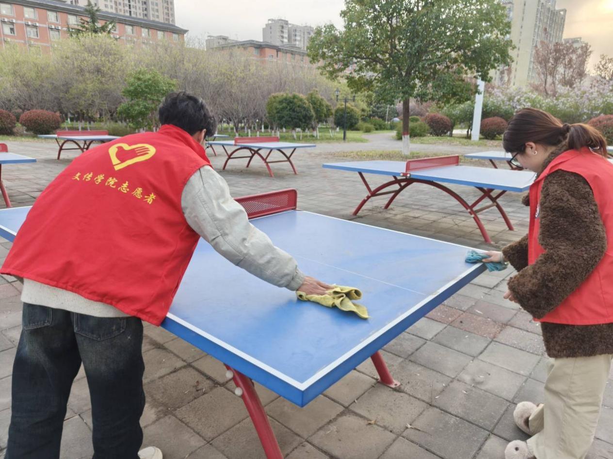 志愿小组清扫校园角落,擦拭运动器材,打造整洁的校园环境,以点滴行动传递雷锋精神与青春正能量。
