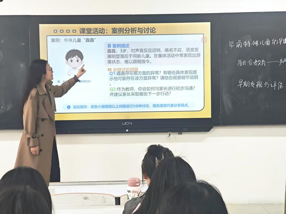 整堂课下来,教学目标明确,节奏张弛有度。学生在发现问题、分析问题、解决问题的完整思维链条中,深化了对融合教育本质的理解,更初步掌握了特殊儿童早期发现与评估的基本路径。课堂呈现出从价值思辨向专业能力转化的清晰脉络,充分体现了以学生为中心、以能力为导向的教学理念。