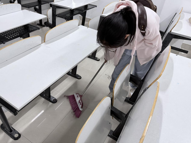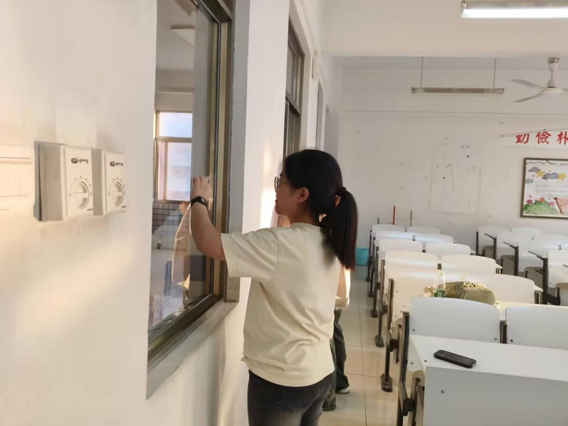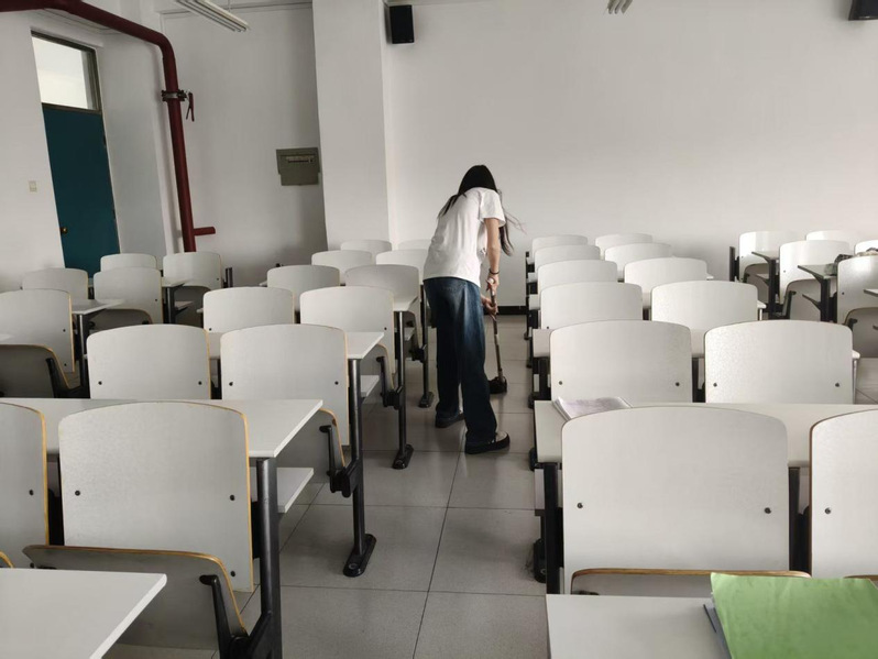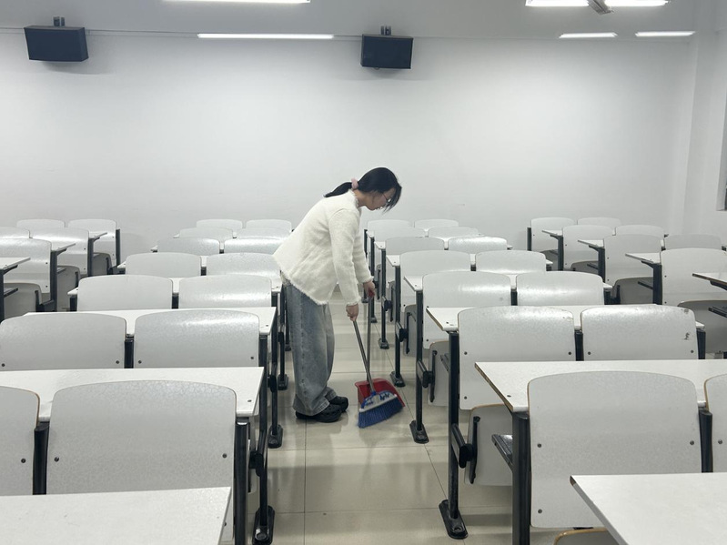 活动中,全体同学迅速行动、分工协作、热情投入。他们对各个教室黑板、讲桌、地面、窗户等区域进行全方位清理,认真擦拭,细致清扫,不放过任何一处细节。经过大家的共同努力,自力楼各教室窗明几净、环境整洁,焕然一新。