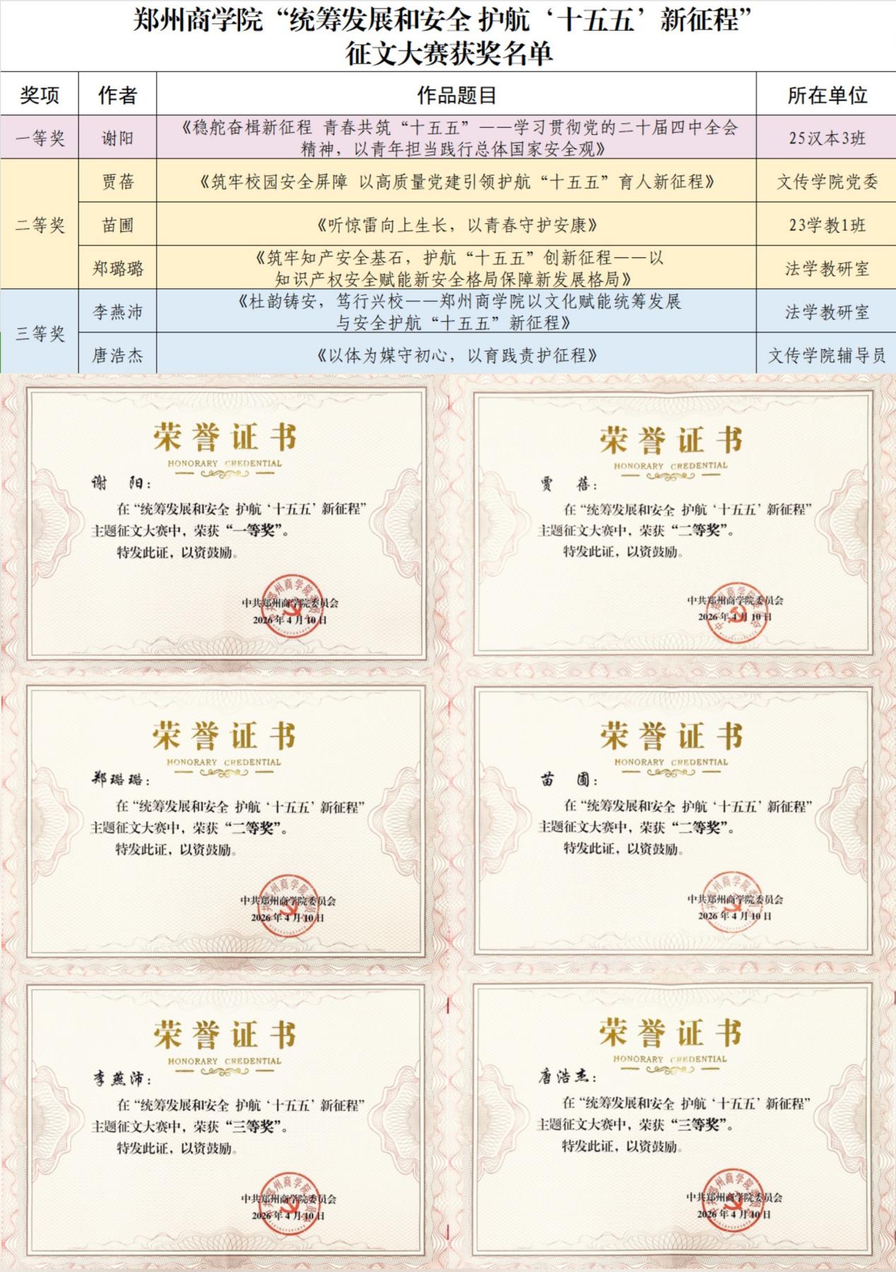 近日,由我校党委主办的“统筹发展和安全·护航‘十五五’新征程”征文大赛圆满落幕,我院师生踊跃参赛、成绩斐然,斩获多项荣誉,充分展现了文传学院师生深厚的理论素养与扎实的创作功底。