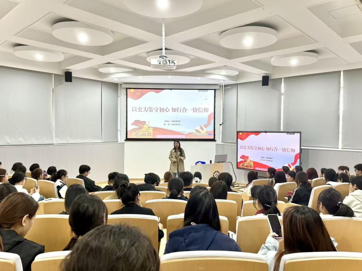 党课第二讲由马克思主义学院潘亚萍老师主讲,她在“以史为鉴守初心 知行合一铸信仰”主题党课中,为学员们生动回顾了从艰苦奋斗到新时代复兴的百年历程,深刻揭示了中国共产党始终为人民谋幸福、为民族谋复兴的初心与使命,并勉励大家以史为鉴、知行合一,将坚定的理想信念转化为扎实的专业学习与日常行动。