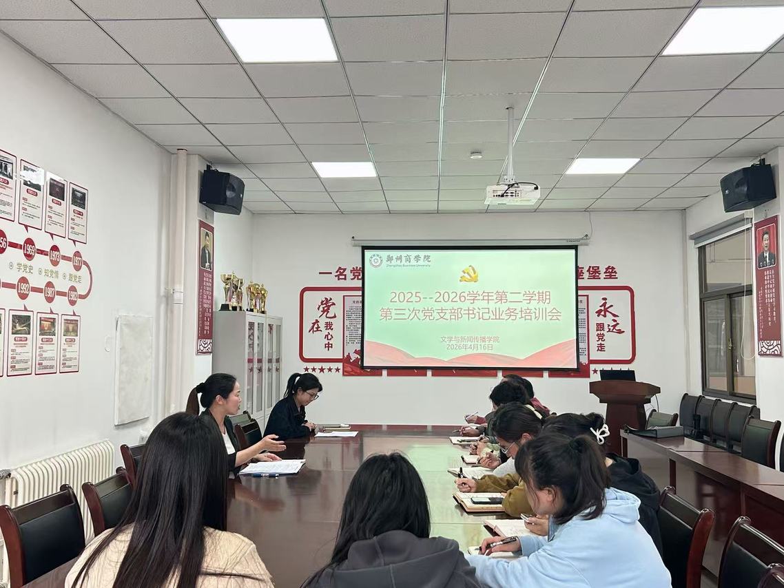 为深入落实校党委关于开展基层党组织“互查互学”工作的部署要求,全面提升党支部书记业务能力和党员教育管理水平,4月16日下午,文传学院党委召开2025—2026学年第二学期第三次党支部书记业务培训会,党委书记贾蓓主持,全体党支部书记参会。