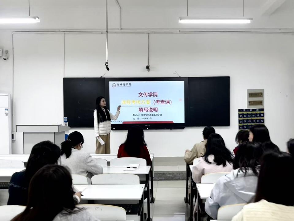 培训中,质检小组成员围绕考核方案填写规范、考核体系设计、分值占比设定、评分标准量化等核心内容进行详细解读,结合文学专业考核方案培训范本,针对各专业学科特点与地方杜甫文化特色融合要点进行差异化指导,明确考核方案制定中需遵循的统一标准与专业调整方向。各教研室结合自身课程设置实际,就考核方案前置落地、特色考核内容设计、存档材料规范整理等问题展开交流探讨,进一步明晰了考核方案制定的思路与要求。
