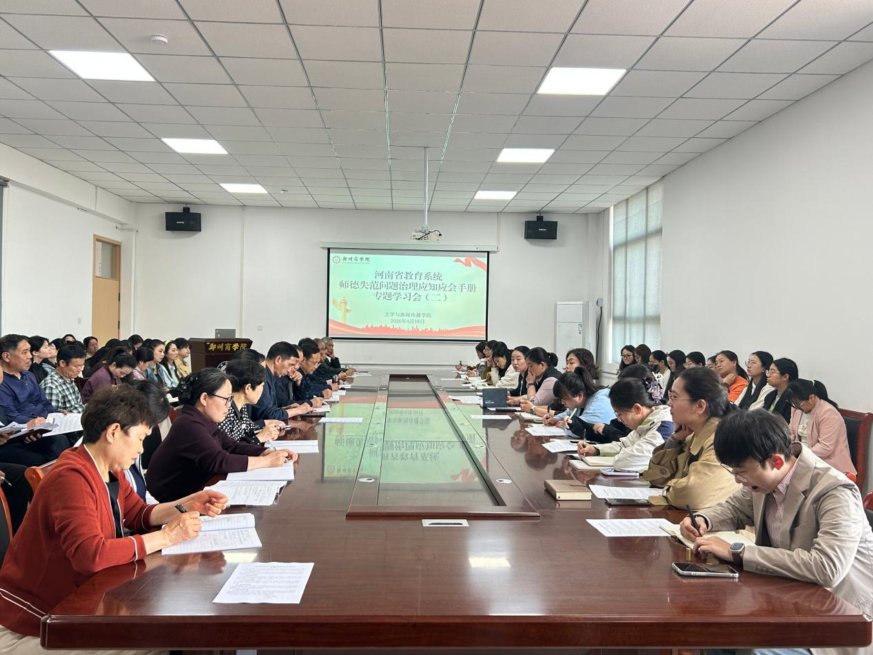 为筑牢教师思想道德防线,落实师德师风建设要求,4月16日,我院于自力楼216会议室组织全体教职工开展《河南省教育系统师德失范问题治理应知应会手册》专题学习会。