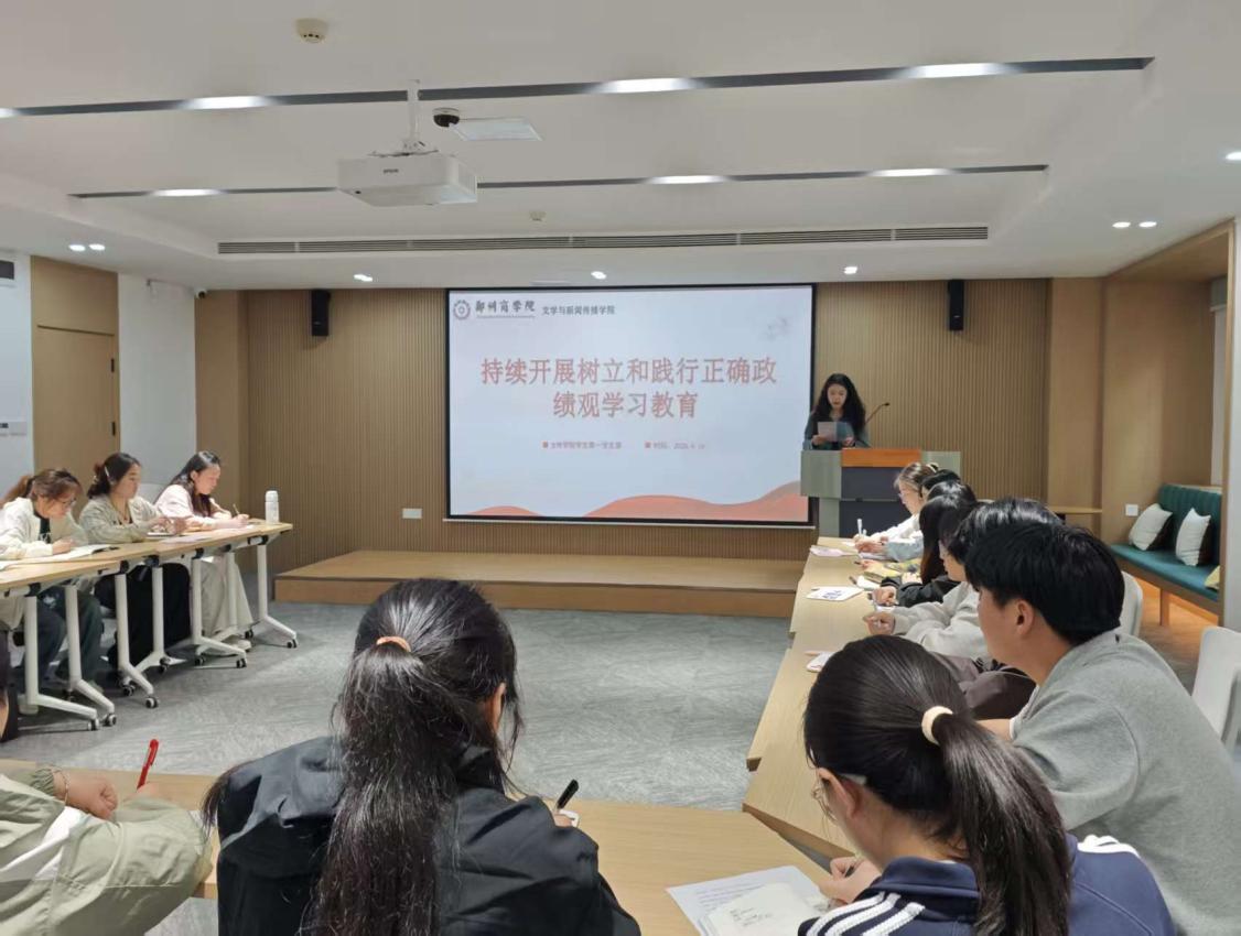 为深入学习习近平总书记关于树立和践行正确政绩观学习教育的重要讲话和重要指示精神,2026年4月17日,文传学院学生第一党支部于32号楼团体活动功能室召开“持续开展树立和践行正确政绩观学习教育”主题党日活动,进一步筑牢思想根基,强化使命担当。