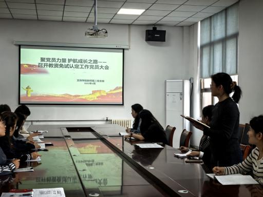 会上,滕菲菲带领全体党员学习了免试认定相关文件的主要内容。会议指出,教师资格证免试认定是国家深化教师教育改革、提升师范生培养质量的重要举措,全体党员要切实把思想和行动统一到学院党委的部署上来。