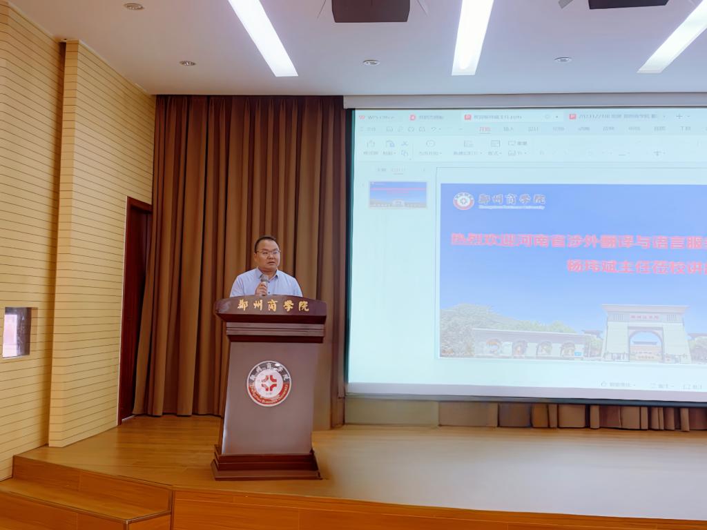 12月21日,全国翻译专业研究生教育指导委员会专家委员会委员、河南省涉外翻译与语言服务专家指导委员会主任杨玮斌莅临我校,为我院的老师和同学们进行了一场别开生面的讲座。出席此次讲座的有院长邱培磊、副院长赵保成、翻译专业教研室主任郜万伟,学院全体教师和21、23级翻译专业的学生参加讲座。