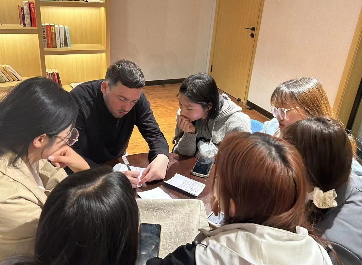 为提升学生英语应用的综合能力、提供英语语言学习的实践平台、增强学生就业竞争力,并扎实推进外语第二课堂的教学工作,外国语学院于3月21日在多元文化交流厅W102举办了第一期英语角活动,主题为Ending and Beginning。本次活动由我院23翻译1班学生作为参与主体,面向全校开放,外籍教师Kris、Emily、Gary和Will参加本次活动。