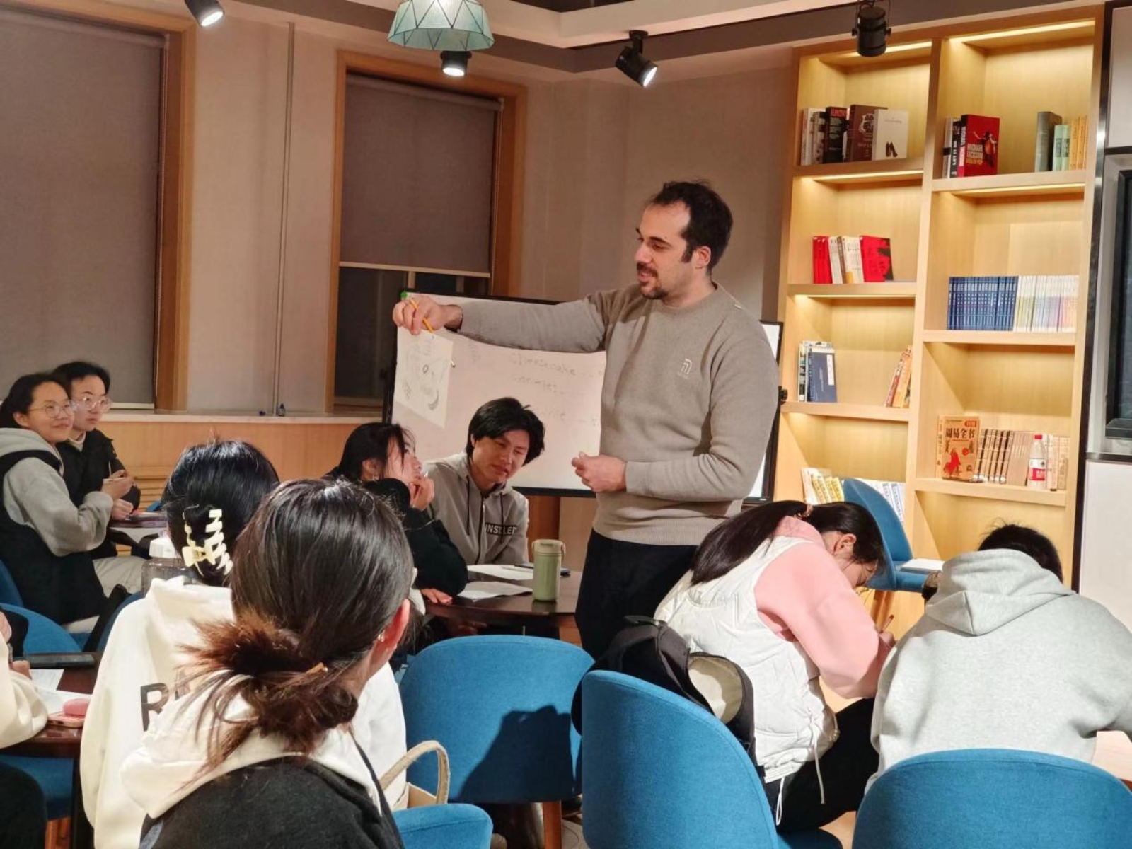 Talal来自美国,在来中国之前,曾教授韩国、越南等国际生商业概念类的课程。本次多元文化角,主要介绍了美国饮食文化及他在世界各地的旅行经历。活动伊始,Talal以图文结合的形式引出本次活动主题,并以趣味绘画及角色扮演的互动方式调动现场气氛,激发学生探索欲与学习兴趣。接着,外教以两段早午餐烹饪视频结束对美国三餐美食文化的讲解。最后,根据Talal设计的互动问题,同学们积极参与讨论。通过本次活动,同学们加深了对美国美食文化的理解,了解了各国的文化差异,更激发了学习外语的兴趣,提升了跨文化交际能力。