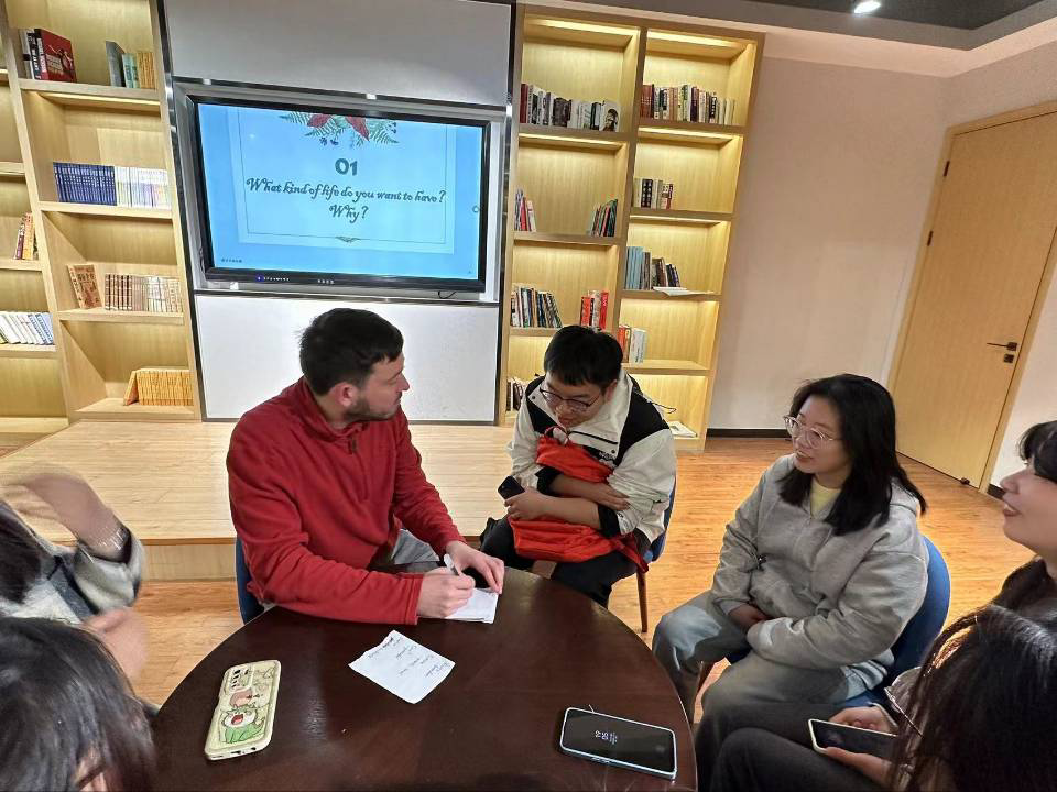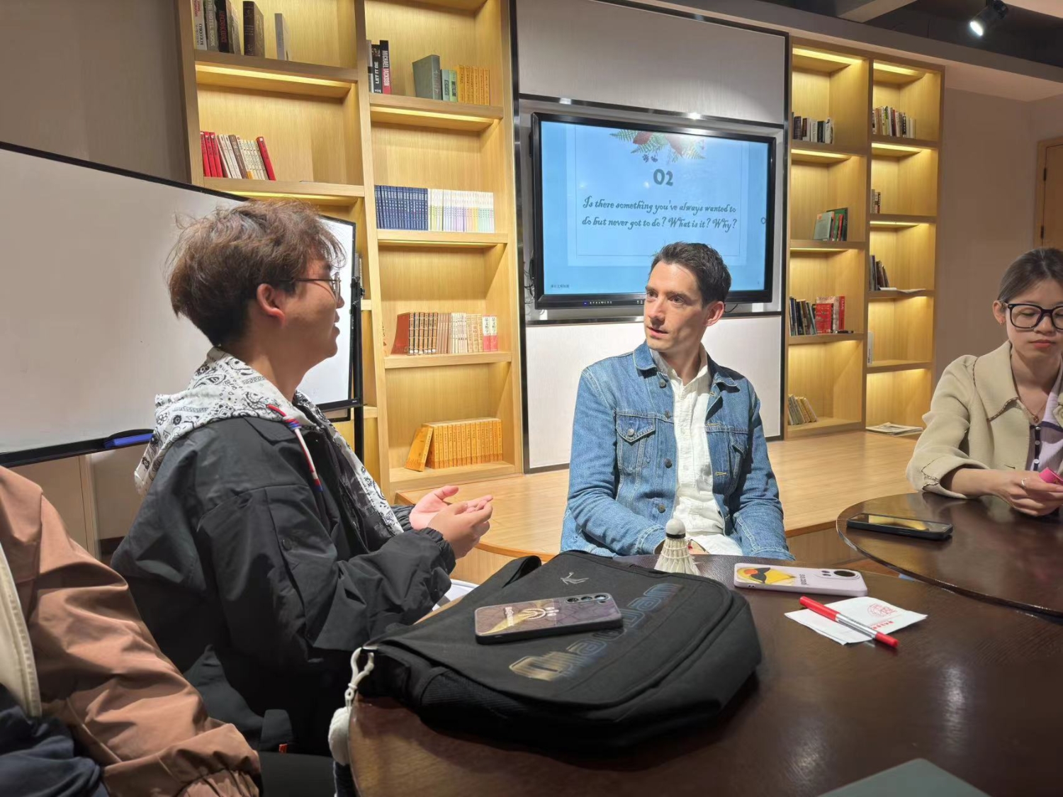 本期活动以理想中的生活为主题进行。活动主要通过问题导入的形式展开,首先根据提出的问题,同学们和外教共同探讨自己心中理想的生活状态,交流自身最喜欢的电影,沟通想做却一直未做的事情,推荐自己旅游过的城市。在讨论的过程,同学们不仅加深了对外教的了解,也提升了自身的英语表达能力。活动中还穿插了你画我猜的英语互动游戏,提升了英语角活动的互动性。