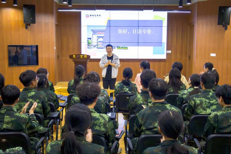 钟浩老师首先代表日语专业全体师生对新生到来表示热烈欢迎。而后钟老师围绕“日语专业概况”展开详细介绍。他从专业历史沿革、课程体系设置、师资力量配备、实践教学平台以及就业与升学前景五个方面进行了系统讲解。钟老师重点介绍了高级日语、日本概况、跨文化交际等核心课程,强调专业注重 “语言能力+专业素养+跨文化视野”的培养模式,通过分层教学、小班授课等方式保障教学质量;在实践教学与就业升学方面,他介绍了校内日语角、校外实践基地以及近年来毕业生在企业就业、考研深造、赴日留学等方面的优异成绩,让新生们对专业发展前景有了更清晰的认识。