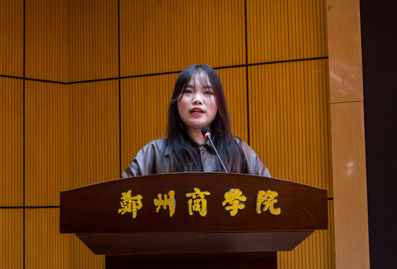 会议伊始,袁媛老师依次介绍莅临会议的领导与嘉宾。接着,我院优秀就业学生代表22级商务英语专业刘园发言,她寄语学弟学妹,不要害怕试错,实践是最好的指南针。同时,要做好未来规划,不要荒废学业。