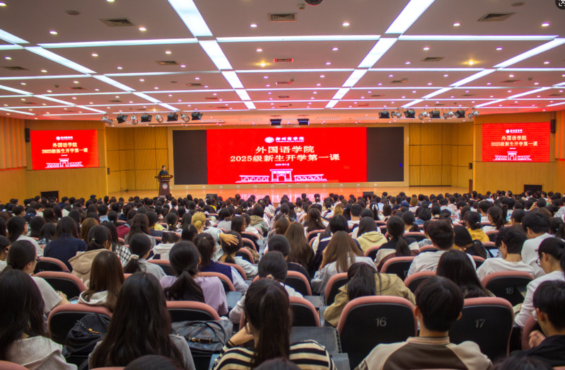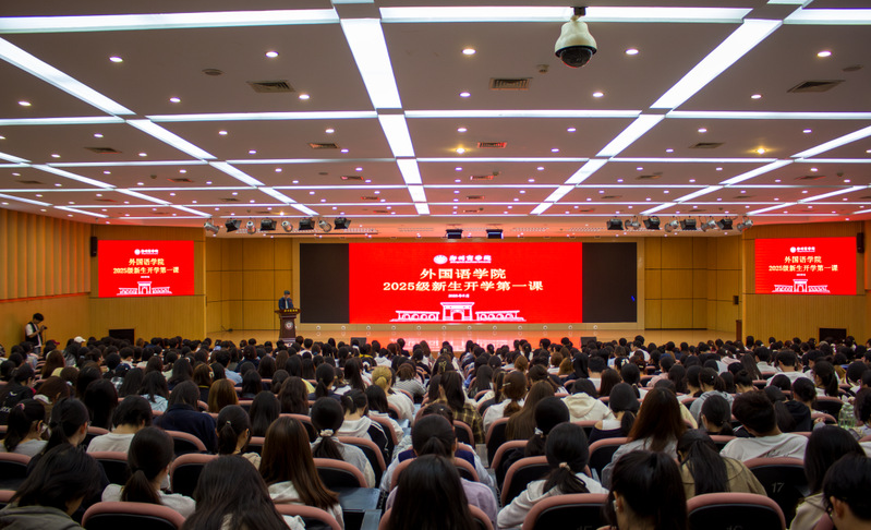 为强化理想信念教育,扎实做好新生入学教育,系好人生“第一粒扣子”。9月26日上午,我院于图书馆一楼国际报告厅召开外国语学院2025级新生入学教育。党委书记王克志、副院长曹晓晨、行政秘书王子浩、企业代表、各教研室主任、教师代表、大一辅导员、优秀就业学生代表及全体2025级新生参与。本次会议由25级辅导员袁媛老师主持。