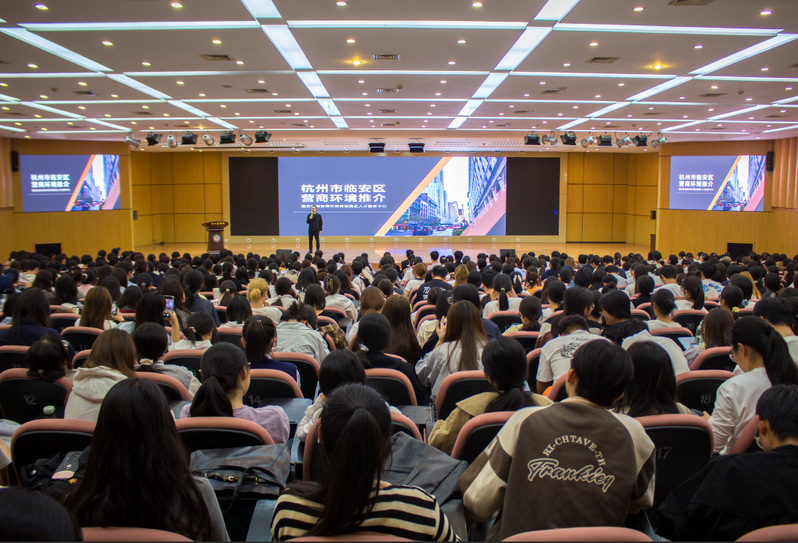 紧接着,我院邀请企业代表杭州临安跨境电商产业园区主任刘涛发言。他向同学们介绍,临安跨境电商产业园区是省级跨境电子商务示范园区,依托杭州综试区政策优势,构建“贸易服务 + 人才孵化 + 物流配套” 生态体系。园区入驻企业超 300 家,与多所高校共建实习基地,常年开展人才定向培养,为外语专业学生提供广阔实践与就业平台。