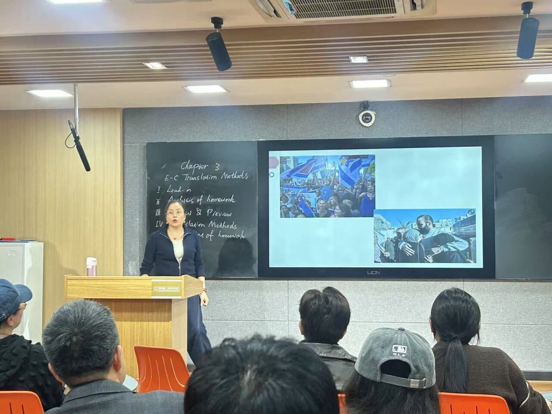 为深化课程思政建设,探索教学与思政元素融合的创新路径,同时为近期教育评估工作提供教学实践参考,10月14日下午,我院大学英语第二教研室在外语楼108开展教师观摩示范课活动。本次活动以“翻译方法教学”为主题,由张伟红老师主讲,教研室全体教师参与观摩学习。