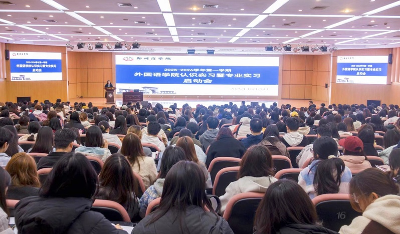 为深化实践教学改革,提升学生专业实践能力,落实应用型人才培养目标,10月20日上午,我院在图书馆一楼报告厅隆重召开2025年认识实习暨专业实习启动会。会议由外国语学院副院长曹晓晨主持,各教研室主任、全体实习指导教师及24级商务英语、英语、日语、德语专业学生和23级翻译专业学生共同参会。