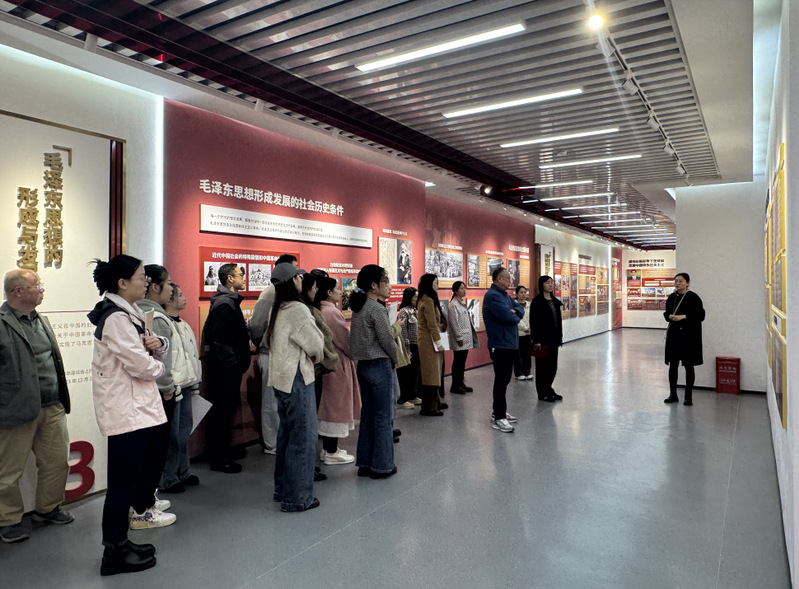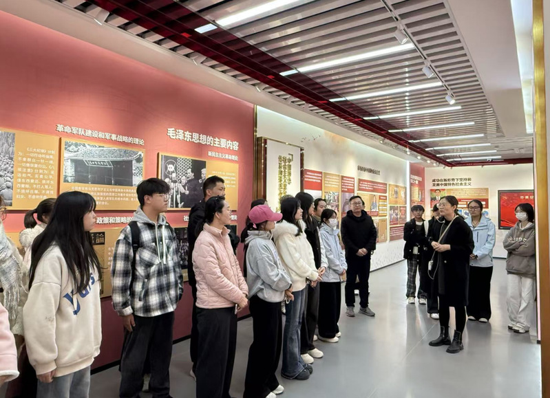 在讲解员常小徽老师的引导下,我院师生参观各展区,通过互动屏幕解读历史文献、体验情景模拟场景,深入了解场馆“理论溯源”“实践探索”“时代赋能”架构。大家在珍贵文献中感悟思想伟力,在历史脉络中探寻发展规律,在沉浸式体验中深入思考,进而汲取奋进力量,深刻领悟马克思主义中国化时代化最新成果的真理力量。