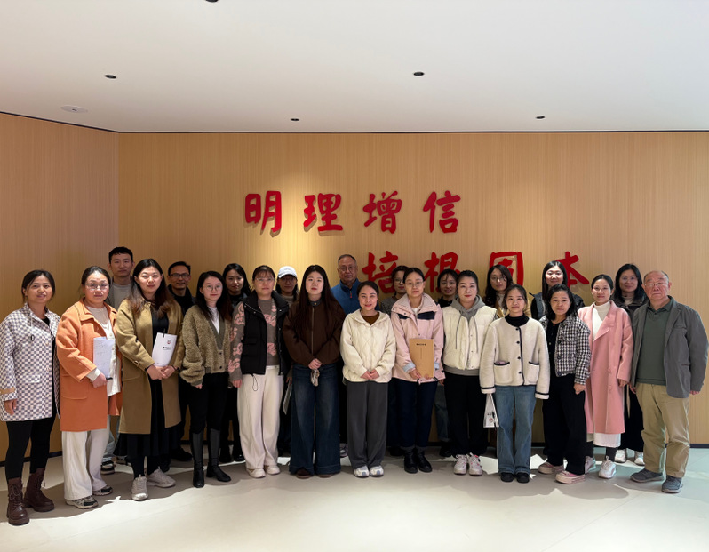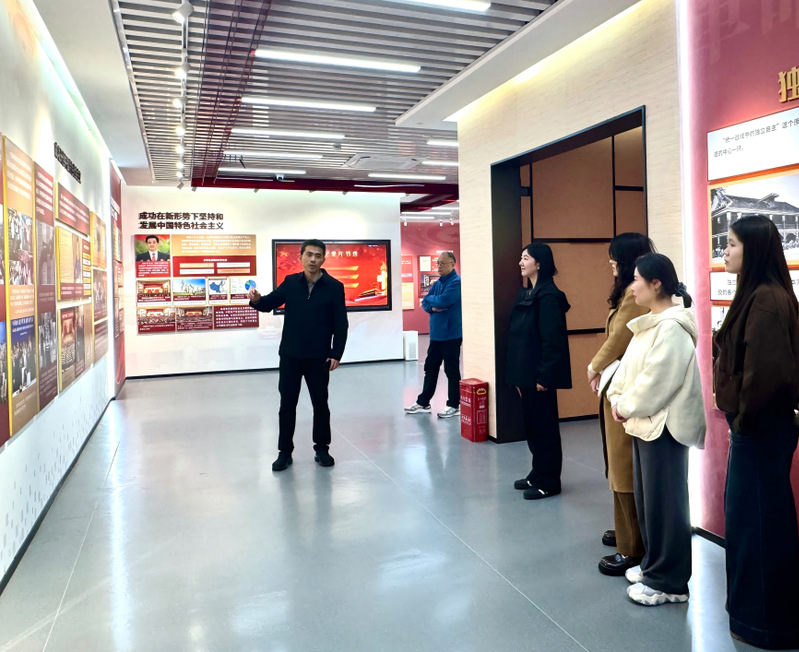 10月23日下午,在学院党委书记王克志、副院长曹晓晨的带领下,英语专业教研室全体教师步入我校精心打造的“真理之光”思政主题教育体验中心,开启了一场触及灵魂的寻根溯源之旅。在党委书记王克志的引导下,教师们沿着马克思主义中国化的历史脉络,系统研习了“习近平新时代中国特色社会主义思想”等核心展区。