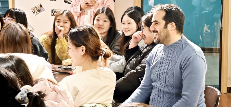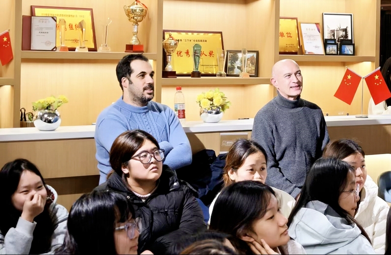 活动伊始,学生代表们用英语分享了春节的传统习俗,从象征阖家团圆的年夜饭,到传递祝福的压岁红包,再到展现民间艺术的舞狮表演,内容丰富、视角多元。在随后的自由交流环节,外教James与Talal积极参与讨论,依托跨文化视角,进一步拓展了活动的广度,深化了活动的内涵,为整场活动注入了多元见解与思想碰撞,环节设计兼具趣味性与思辨性,现场氛围热烈。