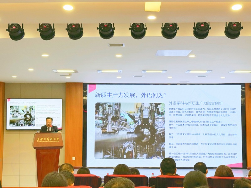 主旨报告环节,北京语言大学王立非教授以“新质生产力发展与西部语言密集型岗位人才培养新机遇”为题,剖析了数智时代语言服务人才需求的新变化;四川外国语大学胡文飞院长围绕“新文科视域下商务英语专业建设模式”,分享了川外的商务英语专业建设路径与特色;对外经济贸易大学李琳教授基于拔尖创新型国际传播人才培养分享了商务英语专业融合发展的探索与实践,为专业融合发展提供了新思路;西安外国语大学刘军伟教授则从全球胜任力教育理念视角下探索商务英语专业人才培养模式改革,为商务英语专业人才培养谋求新方向。