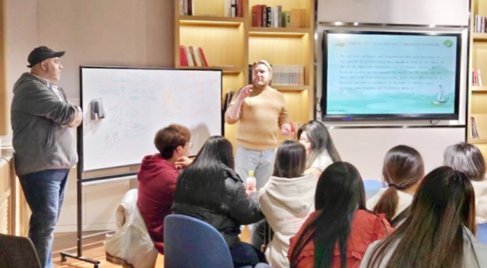 在自由交流环节,中外师生围坐一堂,围绕端午节的文化内涵展开热烈讨论。大家从跨文化视角出发,分享见解、交流感悟,现场思想碰撞不断,气氛活跃而融洽。